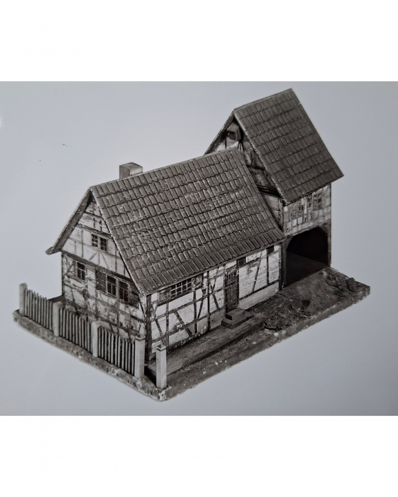 Das Objekt des Monats Januar 2026 ist ein Fachwerkhaus-Modell aus dem Jahr 1907 (Abb. 1–8). Es war 30 Jahre lang, von 1994 bis 2024, in der Dauerausstellung „Henneberg durch Land und Zeit“ zu sehen. Nach dem Abbau der Ausstellung kann das Modell nun Anfang 2026 ins neue Museumsdepot, das Sammlungszentrum Henneberger Land, verbracht werden und nach musealen Standards nachinventarisiert, digitalisiert und bewahrt werden. Denn obwohl das Objekt seit 1982 zum Sammlungsbestand des Hennebergischen Museums Kloster Veßra gehört und obwohl es jahrzehntelang ausgestellt und in einem grundlegenden Aufsatz von Thomas Witter besprochen ist, war das Objekt bis dato nicht ordentlich inventarisiert, geschweige denn digitalisiert oder auch weitergehend untersucht.