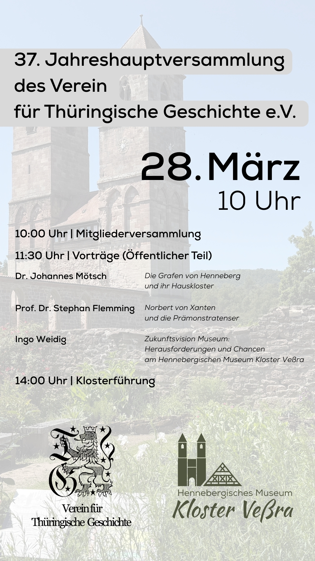10:00 Uhr | Mitgliederversammlung 11:30 Uhr | Vorträge (Öffentlicher Teil) Dr. Johannes Mötsch: Die Grafen von Henneberg und ihr Hauskloster Prof. Dr. Stephan Flemming: Norbert von Xanten und die Prämonstratenser […]